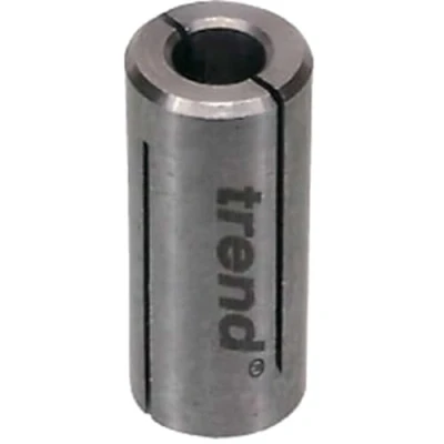 PRECISION MACHINED: The collet sleeve is precision-machined to ensure durability, making it a great addition to your routing tool kit. REDUCE COLLET SIZE: This reduction sleeve is designed to reduce the collet size to take cutters with smaller shanks, ranging from 3mm to 6.35mm (1/4 Inch) in size. STOP GAP: Should only be used as a stop-gap, as the correct size collet is recommended for extensive periods or heavy work. EASY TO INSTALL: Simply insert the reduction sleeve into the existing collet to accommodate smaller shank cutters, allowing for more versatility in your woodworking projects. TREND ROUTING ACCESSORIES: This reduction collet sleeve is designed for use with a range of Trend Routers to take router cutters with smaller shanks. PRECISION MACHINED: The collet sleeve is precision-machined to ensure durability, making it a great addition to your routing tool kit. REDUCE COLLET SIZE: This reduction sleeve is designed to reduce the collet size to take cutters with smaller shanks, ranging from 3mm to 6.35mm (1/4 Inch) in size. STOP GAP: Should only be used as a stop-gap, as the correct size collet is recommended for extensive periods or heavy work. EASY TO INSTALL: Simply insert the reduction sleeve into the existing collet to accommodate smaller shank cutters, allowing for more versatility in your woodworking projects. TREND ROUTING ACCESSORIES: This reduction collet sleeve is designed for use with a range of Trend Routers to take router cutters with smaller shanks., Weight: 0.01763698096 pounds, Manufacturer: Trend