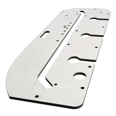 PRECISE WORKTOP CUTS: The KWJ900 Kitchen Worktop Jig offers accurate routing on-site, allowing you to achieve seamless joints in kitchen worktops. It cuts both parts of the joint in just 15 minutes, including setup, for efficient and professional results. VERSATILE DESIGN: This hard-wearing CNC machined compact grade high pressure laminate jig is 12mm thick and suitable for up to 900mm wide worktops. It features fixed lengths for various sizes and can cut worktops up to 40mm thick with or without anti-drip postformed edges. MULTIPLE JOINT OPTIONS: Left-hand and right-hand corners, 400mm and 100mm radius peninsular joints, 45-degree end cuts with slight radius, 45-degree trade corner solution for hob units, 40mm and 35mm radius corners, and even kitchen door and mixer tap holes can be created. USER-FRIENDLY SETUP: The jig comes with engraved lines for short bolts, worktop cross-cuts, and identification of pin holes. It includes 10mm diameter plastic pins with tapered shoulders for a tight fit, ensuring ease of setup. The included clamps securely hold the worktop in place during routing. COMPATIBILITY REQUIREMENTS: A portable plunge router is required with a 12.7mm (1/2 inch) shank capacity and a minimum of 1300 watts. Additionally, a 30mm template guide bush and a TCT router cutter with a 12.7mm (1/2 inch) diameter and 50mm (2 inch) cut length., Weight: 14.64751268728 pounds, Manufacturer: Trend