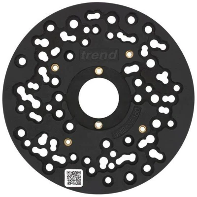General description This universal plunge router sub-base is compatible with most 1/2 inch plunge routers, including 18V cordless models. It enhances your router's capabilities by offering improved concentricity and compatibility with guide bushes, making routing tasks more precise and efficient. Technical specifications Material: Reinforced nylon for durability and low friction Compatibility: Designed to fit most 1/2 inch plunge routers, including cordless models Hole patterns: 23 for versatility Mounting: Includes reinforced threaded brass inserts for secure mounting Quick pattern finder: For easy hole pattern identification Compatibility and accessories Compatible with most 1/2 inch plunge routers Works with Trend guide bushes Includes a screw pack for mounting and adjustments Installation Attach the sub-base to your router using the provided screws and threaded inserts Ensure proper alignment with the router's mounting points Use the quick pattern finder to locate the desired hole