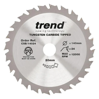Trend Wood Circular Saw Blade, 140mm Diameter, 20mm Bore, 24 Teeth, TCT, 2.4mm Kerf, +15 Hook, CSB/14024