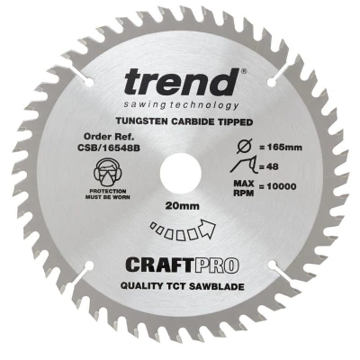 Trend Wood Circular Saw Blade, 165mm Diameter, 20mm Bore, 48 Teeth, TCT, 2.2mm Kerf, +15 Hook, CSB/16548B