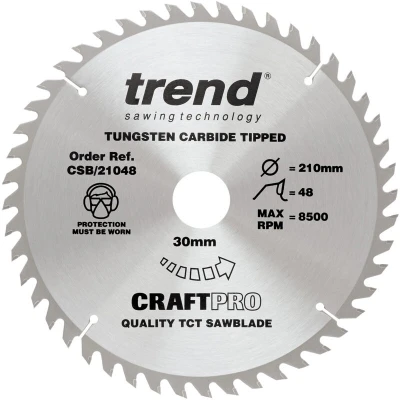 Trend Wood Circular Saw Blade, 210mm Diameter, 30mm Bore, 48 Teeth, TCT, 2.4mm Kerf, +15 Hook, CSB/21048