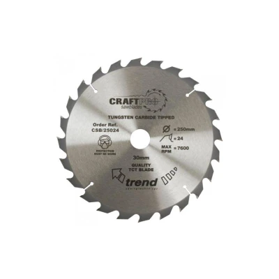 Trend Wood Circular Saw Blade, 250mm Diameter, 30mm Bore, 24 Teeth, TCT, 3mm Kerf, +15 Hook, CSB/25024