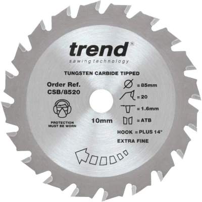 Trend Wood Circular Saw Blade, 85mm Diameter, 10mm Bore, 20 Teeth, TCT, 1.6mm Kerf, +14 Hook, CSB/8520