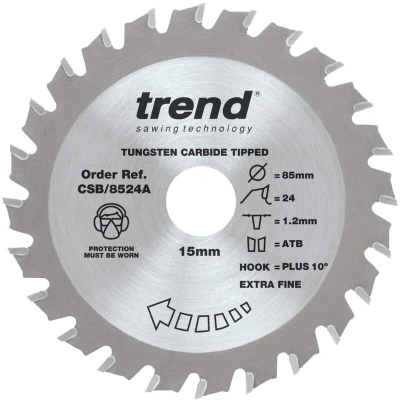 Trend Wood Circular Saw Blade, 85mm Diameter, 15mm Bore, 24 Teeth, TCT, 1.2mm Kerf, +14 Hook, CSB/8524A