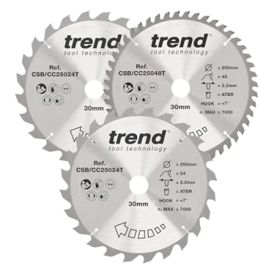 Trend Wood Cordless Atbr Mitre Saw Blade 250mm x 30mm 24/48T, 3 Pack