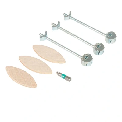 Trend ZIPBOLT Compact Laminate Worktop Connector Kit, 12 15mm Thickness, Zinc Plated Steel, Includes T25 Torx Bit & No.20 Biscuits, ZIP/20/100/3