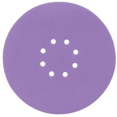 ManoManoTrend 225mm Random Orbital Sanding Disc with a multi-material, long-life zirconium abrasive. This self-sharpening grit maintains cutting performance by fracturing away in use to expose fresh, sharp-cutting faces. An anti-clogging open coat reduces clogging and allows for faster stock removal, especially on gummy, resinous timbers, fillers and paint removal. The elongated hole pattern ensures base compatibility and aids maximum extraction capability. Hook & loop fixing provides a secure fit to the tool base. Suitable for heavier sanding on fillers, drywall sanding on walls and ceilings, removing old paintwork, prepping walls. This hard surface abrasion excels on harder materials, especially metals. 1 x Pack of 10 Trend Zirconium Random Orbital Sanding Discs 225mm x 60G.