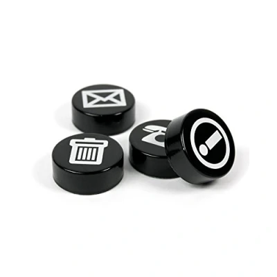 1 set of 4 Each magnet measures 23mm diameter x 9mm thick Each disc includes a strong magnet with a felt backing so it won't scratch Professional and discreet black painted finish with printed icons Display your items in style!