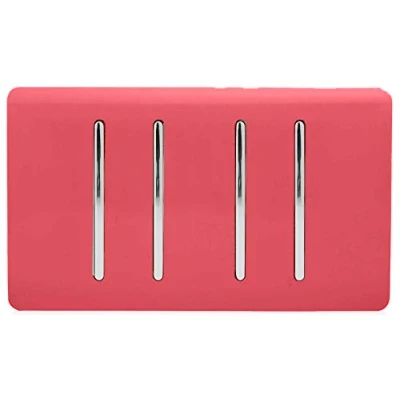 Trendi 4 Gang (2 Way & 3xIntermediate) Glossy 10 Amp Rocker Light Switch Strawberry