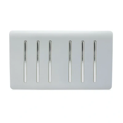 Trendi Artistic Modern Glossy 6 Gang 2 Way Rocker Double Plate Tactile Light Switch in Silver