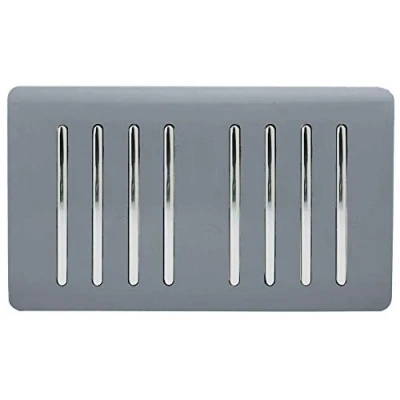 A WARM GREY 8 GANG LIGHT SWITCH MADE FROM HIGH QUALITY FIREPROOF ABS PLASTIC: From Trendiswitch, screwless plate with a sleek and modern appearance – making decorating a breeze. PART OF THE TRENDISWITCH COLLECTION: The switch faceplate maintains a smooth, gloss surface in grey that will not fade in direct sunlight like some similar products SCREWLESS PLATE WITH NO ADDITIONAL WIRING NEEDED: Makes it easy to clean and install– simply replace the old switch by removing the faceplate and clicking the new one into place SEMI-FLUSH DESIGN FITS IN WITH THE WALL: The rounded corners and style creates a minimalistic yet pleasing to the eye décor that can be switched up with any of our other colours PROTECTION GUARANTEED: TrendiSwitch guarantees a five year warranty period where your switch will be protected against scratches, fading or malfuctioning – so you can feel at ease, Weight: 0.440924524 Pounds, Manufacturer: Trendi Switch