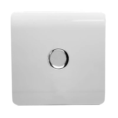 This Trendi Artistic Modern Screwless 120 Watt LED Dimmer Switch has a stunning glossy ice white finish with an elegant glossy chrome rotary knob. It s included in the most coveted Trendiswitch collection, which features high-quality modern, designer switches and sockets that are not only captivating visually but are also easy to flick on/off and locate! Trendiswitches lets you experience luxury without robbing your bank and draining your pockets! Why do you have to purchase it? Trendiswitches are like your most cherished designer bags and shoes (but much more affordable)! It s the ultimate upgrade to your boring light switches and plug sockets! Speedy and no-fuss installation process. No additional wiring is required so, just swap it over with your old dimmer switch (if you cannot do it by yourself, ask an electrician to do it) It has a sleek on/off rotary dimmer twist knob for adjusting the brightness level of your lights in style! Child s play to clean! Toss out those cleaning detergents because you only need a few swipes with a cloth and you can say hello to the glossy ice white and chrome finish! The faceplate is scratchproof and even if it sits under direct sunlight, it won't fade. No parting ways with the luxury look for years! Notable Features: Elegant finish, you won t see any screws after installation is done 200 watts maximum load capacity Made with a Fireproof ABS Plastic module casing and faceplate It s ideal for domestic lighting circuits and indoor use In the Trendi Switch Range : Trendi 1 Gang 2 Way Artistic Modern Glossy Screwless 10 Amp Rocker Light Switch White Trendi Artistic Modern Glossy Screwless Fused Spur Switch White Trendi 1 Gang CAT 5 or 6 Artistic Modern Glossy Screwless PC Socket White These dimmer switches are also available in different colours! Point to note: Not suitable for use with non-dimmable fluorescent bulbs and tubes, wire-wound or toroidal transformers or electric motors.