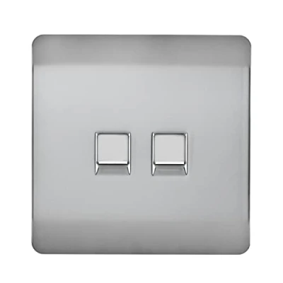A STEEL 2 GANG TELEPHONE SOCKET MADE FROM HIGH QUALITY FIREPROOF ABS PLASTIC: From Trendiswitch, screwless plate with a sleek and modern appearance making decorating a breeze. PART OF THE TRENDISWITCH COLLECTION: The socket faceplate maintains a smooth, gloss surface in steel that will not fade in direct sunlight like some similar products SCREWLESS PLATE WITH NO ADDITIONAL WIRING NEEDED: Makes it easy to clean and install simply replace the old switch by removing the faceplate and clicking the new one into place SEMI-FLUSH DESIGN FITS IN WITH THE WALL: The rounded corners and style creates a minimalistic yet pleasing to the eye dcor that can be switched up with any of our other colours PROTECTION GUARANTEED: TrendiSwitch guarantees a five year warranty period where your socket will be protected against scratches, fading or malfuctioning so you can feel at ease, Manufacturer: Trendi Switch