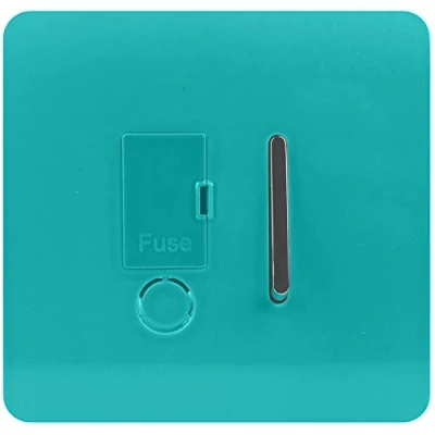 A BRIGHT TEAL 13 AMP FUSED SPUR SWITCH MADE FROM HIGH QUALITY PC PLASTIC: From Trendiswitch, screwless plate with a sleek and modern appearance – making decorating a breeze. PART OF THE TRENDISWITCH COLLECTION: The switch faceplate maintains a smooth, gloss surface in black that will not fade in direct sunlight like some similar products SCREWLESS PLATE WITH NO ADDITIONAL WIRING NEEDED: Makes it easy to clean and install– simply replace the old switch by removing the faceplate and clicking the new one into place SEMI-FLUSH DESIGN FITS IN WITH THE WALL: The rounded corners and style creates a minimalistic yet pleasing to the eye décor that can be switched up with any of our other colours PROTECTION GUARANTEED: TrendiSwitch guarantees a five year warranty period where your switch will be protected against scratches, fading or malfuctioning – so you can feel at ease, Manufacturer: Trendi Switch