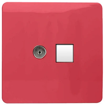 Trendi Artistic Modern Glossy Tactile TV Co axial Socket + Telephone Strawberry