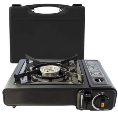 Trendi Black Portable Camping Stove Lightweight EN417 Gas with Carry Case, Automatic Ignition & Heat Control Ideal for Camping, Hiking Outdoor Cooking
