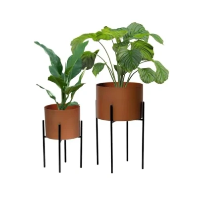 Trendi Bronze Set of 2 Planter Pots with Metal Stands, Flower Living Room decor Plant pot for Indoor/Outdoor Herb Garden Container Organizer (Set Bronze)