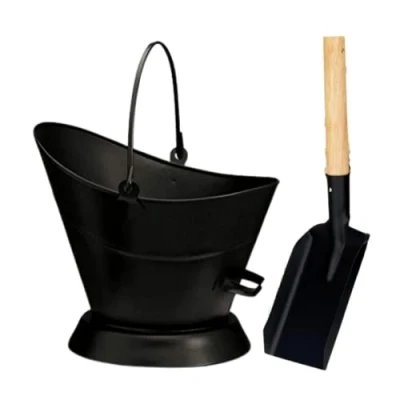 Traditional style design Use to store coal or as a decorative feature Includes carrying handle Premium quality coal scuttle with attractive matte black finish All metal construction,Attractive matt black finish Size: Top diameter: 37cm Bottom diameter: 29cm Overall height: 40cm (Approximately Size) Fireplace Waterloo Style Black Coal Scuttle Bucket Hod with Shovel (Large Waterloo Style Coal Bucket & Shovel)
