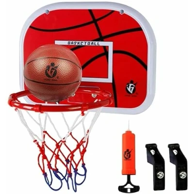 ABS Board hanger freely adjustable based on different thickness of various doors, ensures few fall for perfect fitting. Basketball board measures 38 cm(14.96") in width,hoop measures 25 cm(9.84")in diameter,basketball measures 16 cm(6.3") in diameter Used as leisure sport or for shooting practice as you like. Great for Parent-child interaction, both suitable for adults and children. Package:1x Basketball board with Hoop(ring and net),1 x Basketball,1 x Pump with pin Mini Indoor Basketball Hoop Play Set,Hanging Basketball Board with Ball and Pump for Kids Children