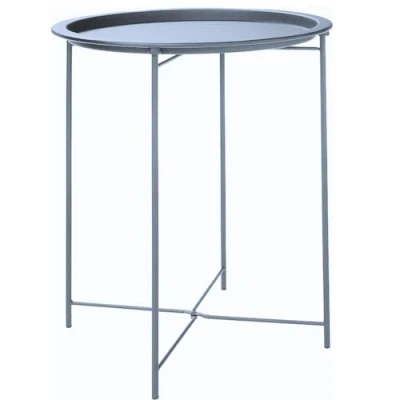 Round tray table made of strong and sturdy metal frame and powder coated The coffee table tray top of this attractive table is removable, so you can prepare breakfast, supper, snacks, coffee or drinks in the kitchen and then easily transport them back to the home service tray Our round side table four legs are patterned with x-shaped rods to enhance stability, the coffe table each leg features a non-slip rubber pad for floor protection and avoid noising. This table can be assembled without special tools in just a few minutes Our outdoor coffee tables features smooth surface & can be easily cleaned with a damp cloth. Suitable for indoor and outdoor use - Weatherproof
