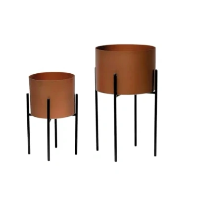 Trendi Set of 2 Versatile Metal Planters with Reversible Stand Plant Pots for Indoor/Outdoor (Bronze/Copper Colour Black Stand)