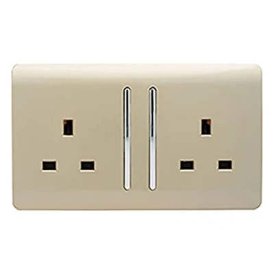 Trendi Switch 2 Gang Artistic Modern Glossy 13 Amp Electrical Long Switched Double Plug Socket Gold
