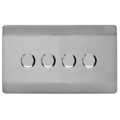 Trendi Switch 4 Gang 1 or 2 way 150w Rotary LED Dimmer Light in Brushed Steel