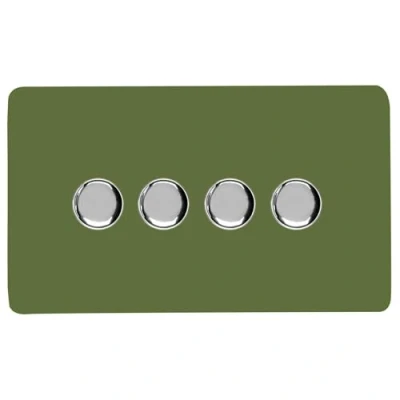 Trendi Switch 4 Gang 1 or 2 way 150w Rotary LED Dimmer Light in Moss Green