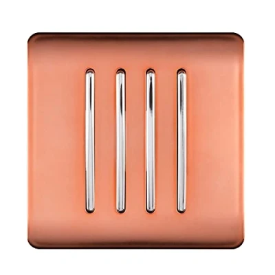 A COPPER 4 GANG 2 WAY LIGHT SWITCH MADE FROM HIGH QUALITY FIREPROOF ABS PLASTIC: From Trendiswitch, screwless plate with a sleek and modern appearance – making decorating a breeze. PART OF THE TRENDISWITCH COLLECTION: The switch faceplate maintains a smooth, gloss surface in copper that will not fade in direct sunlight like some similar products SCREWLESS PLATE WITH NO ADDITIONAL WIRING NEEDED: Makes it easy to clean and install– simply replace the old switch by removing the faceplate and clicking the new one into place SEMI-FLUSH DESIGN FITS IN WITH THE WALL: The rounded corners and style creates a minimalistic yet pleasing to the eye décor that can be switched up with any of our other colours PROTECTION GUARANTEED: TrendiSwitch guarantees a five year warranty period where your switch will be protected against scratches, fading or malfuctioning – so you can feel at ease, Weight: 0.2535316013 pounds, Manufacturer: Trendi Switch