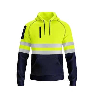 trending babz Mens Hi Vis 2 Tone Yellow Orange Sweatshirt Reflective Tape Band 3 Zips Patched Pull Over Security Work Wear Hoodie S 2XL
