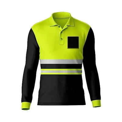 trending babz Mens High Visibility Reflective Tape Hi Vis Safety Workwear Polo Shirt Long Sleeve Tee Contrast Tshirt Top Yellow Black