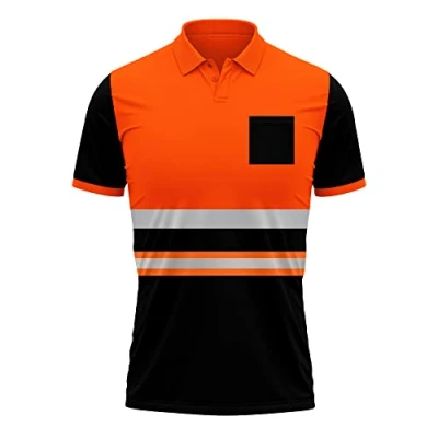 Mens Hi Viz High Visibility Reflective Effects Safety Work Wear Polo Shirts in fluorescent Yellow, Orange Black Contrast. Designed with a pencil pocket on Arm, Buttons Fastening, and Shorts Sleeves. (360°) High Visible Reflective Tape Strips, for Prominent and Maximum Look in dark area. Wide Usage for construction staffs, survey crews, emergency responders, security, surveyors, EMS, engineer, contractors, forestry, firefighter, police, crossing guard, public safety, traffic and parking attendants. PRODUCT CARE: Maximum washing temperature 40°C normal process. Do not bleach. Do not tumble dry. Line drying. Do not iron. Do not dry clean.