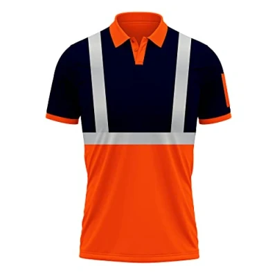Mens Hi Viz High Visibility Reflective Effects Safety Work Wear Polo Shirts in fluorescent Yellow, Orange Black Contrast. Designed with a pencil pocket on Arm, Buttons Fastening, and Shorts Sleeves. (360°) High Visible Reflective Tape Strips, for Prominent and Maximum Look in dark area. Wide Usage for construction staffs, survey crews, emergency responders, security, surveyors, EMS, engineer, contractors, forestry, firefighter, police, crossing guard, public safety, traffic and parking attendants. PRODUCT CARE: Maximum washing temperature 40°C normal process. Do not bleach. Do not tumble dry. Line drying. Do not iron. Do not dry clean.