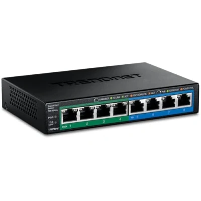 TRENDnet 8 Port Gigabit GREENnet PoE+ Switch, TPE TG44G, 4 x PoE/PoE+ Up to 30 W/Port, Gigabit, 61 W Power Budget, 16 Gbps Switch Capacity, Ethernet Unmanaged