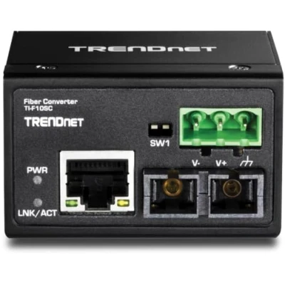 TRENDnet Hardened Industrial 100Base FX Multi Mode SC Fiber Converter, (2km, 1.2 Miles), IP40 Rated Housing, TI F10SC,Black