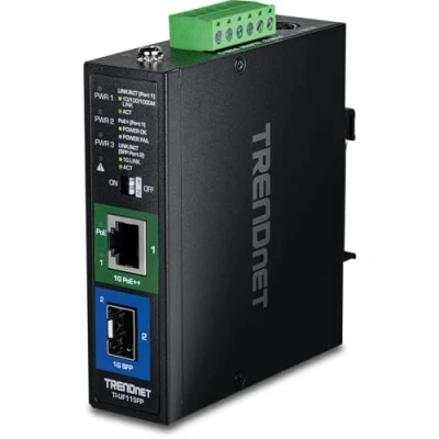 TRENDnet Hardened Industrial SFP to Gigabit UPoE Media Converter, IP30 Rated Housing, Includes DIN rail & Wall Mounts, Operating Temp. 40 75 C ( 167 F), TI UF11SFP