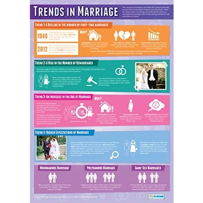 Trends in Marriage Sociology Posters Laminated Gloss Paper measuring 850mm x 594mm (A1) Class Education Charts by Daydream