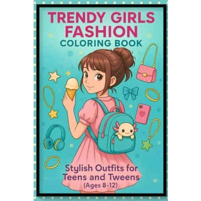 Trendy Girls Fashion Coloring Book: Stylish Outfits for Teens and Tweens ( Ages 8 12 )