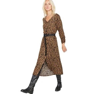 Material Composition: 100% Viscose Occasion: The Camel Regular fit Dress is perfect for Casual/Casual occasions. Our Collection offers affordable fashion for every occasion and style – from casual & relaxed to smart & elegant. Trendyol Collection translates the latest runway trends into wearable outfits for your wardrobe. Design: This Woven Dress matches the latest trends. Trendyol designs casual everyday looks for everyone who like it cool and stylish. If you are in between size,please size up. Wash at a maximum temperature of 30°C. Do not use bleach. Do not tumble dry. Iron at low temperature. Do not dry clean.