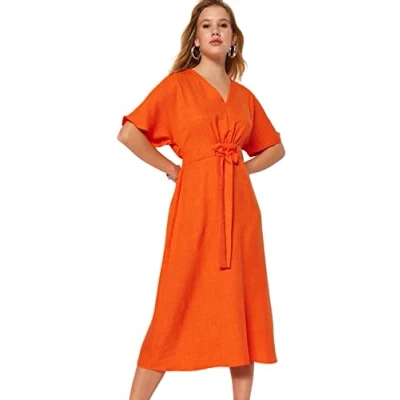 Trendyol FeMan A line Regular fit Woven Dress,Orange,42