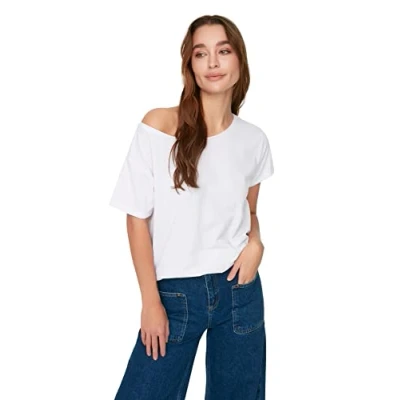 Material Composition: 100% Cotton Occasion: The Weiß Boyfriend T-Shirts is perfect for Casual occasions. Our Basic Collection offers affordable fashion for every occasion and style – from casual & relaxed to smart & elegant. Trendyol Collection translates the latest runway trends into wearable outfits for your wardrobe. Design: This Basic Knit T-Shirt for Female has Short sleeve Boat neck Plain pattern. It is Boyfriend fit. If you are in between size,please size up. Wash at a maximum temperature of 30°C. Do not use bleach. Do not tumble dry. Iron at low temperature. Please check the product label for detailed care instructions.
