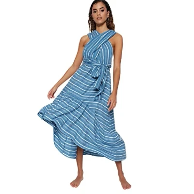 Trendyol FeMan Beachwear Midi A line Regular fit Woven Dress Blue