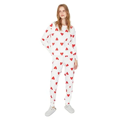 Material Composition: 100% Cotton Occasion: The White Regular fit Pajama Set is perfect for Lounge/Home occasions. Our Homewear Collection offers affordable fashion for every occasion and style – from casual & relaxed to smart & elegant. Trendyol Collection translates the latest runway trends into wearable outfits for your wardrobe. Design: This Regular fit Knit Pajama Set for Female has Crew neck Standard sleeve top and Straight leg bottom. It matches trends with Heart pattern. If you are in between size,please size up. Wash at a maximum temperature of 30°C. Do not use bleach. Do not tumble dry. Iron at medium temperature. Do not dry clean. Keep away from fire.