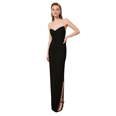 Material Composition: 87% Polyester, 13% Elastane Occasion: The Black Fitted Evening Dress is perfect for Graduation/Prom occasions. Our Collection offers affordable fashion for every occasion and style – from casual & relaxed to smart & elegant. Trendyol Collection translates the latest runway trends into wearable outfits for your wardrobe. Design: It is a Strapless Maxi Evening Dress for Female. This Woven Evening Dress has a Shift design with Plain pattern. If you are in between size,please size up. Wash at a maximum temperature of 30°C. Do not use bleach. Do not tumble dry. Iron at low temperature. Do not dry clean.