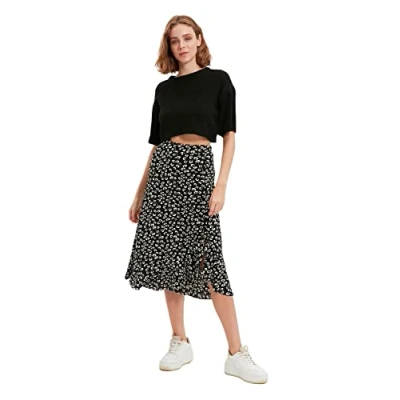 Material Composition: 96% Polyester, 4% Elastane Occasion: The Schwarz Regular fit Skirts is perfect for Casual/Casual occasions. Our Collection offers affordable fashion for every occasion and style – from casual & relaxed to smart & elegant. Trendyol Collection translates the latest runway trends into wearable outfits for your wardrobe. Design: This Midi Skirt for female has a a-line design with polka dot pattern. If you are in between size,please size up. Wash at a maximum temperature of 30°C. Do not use bleach. Do not tumble dry. Iron at low temperature. Do not dry clean.