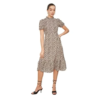 Material Composition: 100% Polyester Occasion: The Cream Regular fit Dresses is perfect for Casual occasions. Our Collection offers affordable fashion for every occasion and style – from casual & relaxed to smart & elegant. Trendyol Collection translates the latest runway trends into wearable outfits for your wardrobe. Design: It is a Standing collar Midi Dress for Female. This Woven Dress has a Basic design with Floral pattern. If you are in between size,please size up. Please check the product label for detailed care instructions.