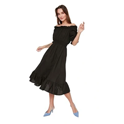Trendyol FeMan Midi Skater Regular fit Woven Dress Black