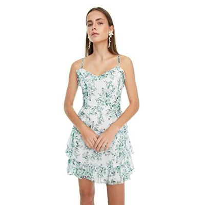 Material Composition: 100% Polyester Occasion: The MINT Regular fit Dress is perfect for Casual/Casual occasions. Our Collection offers affordable fashion for every occasion and style – from casual & relaxed to smart & elegant. Trendyol Collection translates the latest runway trends into wearable outfits for your wardrobe. Design: It is a V Neck Mini Dress for Female. This Woven Dress has a Ruffle hem design with Floral pattern. If you are in between size,please size up. Please check the product label for detailed care instructions.