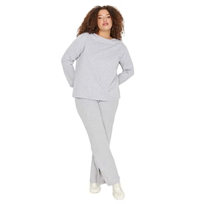 Trendyol FeMan Plain Knit Sweatshirt Sweatpants Plus Size Pajamas Set Gray